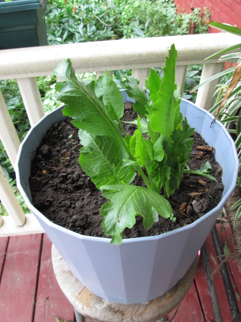 Last spring we bought some horseradish root for the first time. After I used it for our Passover meal, I completely forgot it in the refrigerator. I found it a couple of weeks ago, and noticed that it was growing. So I found a pot in the garage, filled it with dirt, and planted the root. It has been growing nicely. I do not know anything about growing horseradish, I do not know when or how to harvest it. I will learn.