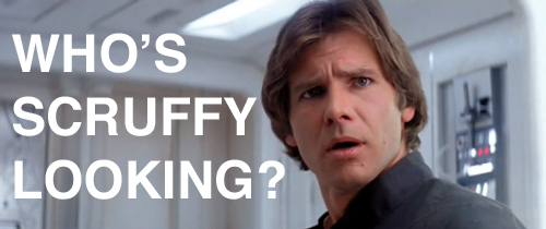 “Well, looking like Mr. Clean is better than looking like a scruffy nerf-herder,” I replied, referring to Princess Leia insulting Hans Solo in Star Wars.
