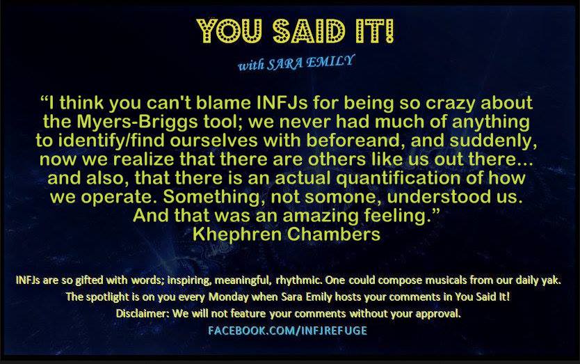 We are paradoxical, meaning there are contradictory opposites in our personality. For example, we think deeply about everything, but we struggle to adequately explain our thoughts to others. While we are very introverted, we also need to connect to others so there is a struggle between being private AND needing to connect to people. We deeply understand others, but are seldom understood. We love deeply but can also be hurt deeply. Our love of truth and authenticity is difficult to endure in a world in which people wear masks.
