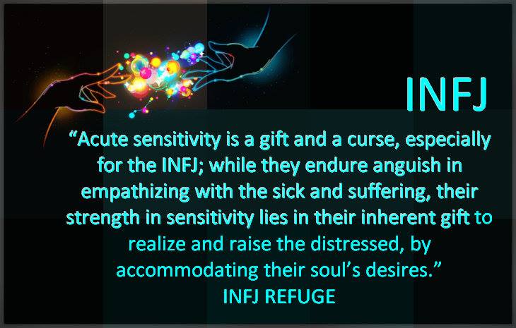 INFJs are very complex people. We think deeply, are very observant, and see through many different perspectives. We have amazing insight into people. We feel intensely, are so empathetic that we are considered Empaths (people who actually feel the emotions and sufferings of others). We are very gentle, very compassionate, nonjudgmental, and forgiving, and are great listeners and counselors. We have high principles, love truth, honesty, and authenticity, and hate injustice.