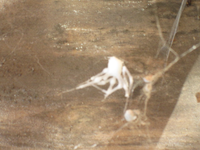 I saw only one or two spiders while I was I was down there and they quickly darted away. I also saw a strange looking creature on an old cabinet. It looked sort of like a white octopus. There were a couple smaller ones nearby. I have never seen such a thing before so I took a picture of it.