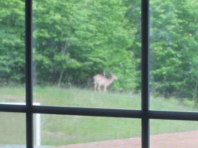 So, I finally quit working for the night, and I’m sort of laying on the couch with my feet up. I can look out our big living room windows and enjoy the beautiful scenery. And then I saw a doe walk out of the trees and graze. And I thought “This is why I wanted to move…I love being able to see wildlife in my yard!
