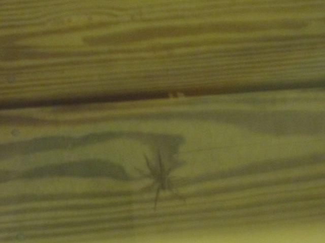 Last night I looked out the front door and saw a humongous spider on the porch. I texted EJ, “I just saw the biggest spider EVER on our front porch. I need a gun.” It was the size of my hand. Seriously. I took a picture of it. It’s kind of blurry because I took it through the door. There is no way I was going to open the door when it was less than a foot away. If I ever saw one of those things crawling across the floor or wall, I swear I’ll run screaming all the way back to our old house.