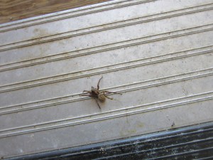 In between caring for my guys, I got a couple loads of laundry washed. As I was coming back in the house after hanging the clothes on the clothesline, I saw a big wolf spider lurking on the threshold. If I opened the door, it could very easy scramble into the house. So I found a shoe on the porch and smashed it.