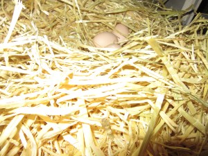 After I let Danny out, I went out to the coop, filled the pool, water buckets, and food dish, and opened the little doors for the ducks and chickens. I discovered a pile of eggs that a hen had hidden. There were five in all inside the inner coop. I had wondered why the number of eggs had decreased. I was unsure if the chickens were no longer laying–although it seemed early in the year for that–or if I just wasn’t finding the eggs. There’s really not a whole lot of places to conceal eggs, but the ducks and chickens seem to be extremely skilled at hiding them.