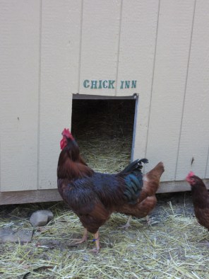 I painted other letters green. I glued some of them outside over the chicken’s little door, which is at the back of the coop: