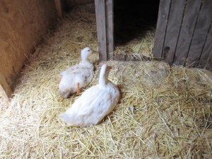 All summer long Cuddles has been, uh, intensely pursuing Esther. Esther is the older lame duck that EJ’s sister gave us. Esther is Cuddles’ favorite female and he was after her all…the…time. I felt sorry for Esther because Cuddles was merciless in his attentions. EJ called Cuddles season of lust his Pon Farr in reference to the reproductive cycle of Vulcans in the Star Trek universe. As Wikipedia explains it, “Every seven years, Vulcan males and females become aroused. They undergo a blood fever, become violent, and finally die unless they mate with someone with whom they are empathically bonded or engage in a ritual battle known as kal-if-fee.” Now that Cuddles’ season of Pon Farr is past, I often find him in the coop quietly hanging out with Esther.