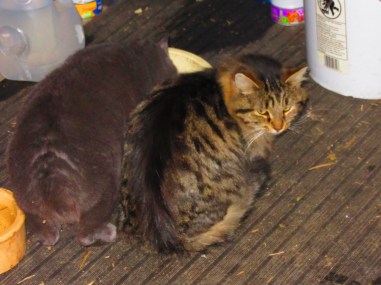 Madeline disappeared for almost a week and I feared the worse–that she had fallen victim to a coyote, fox, or some other predator. Annie and Josette stay up near the house, but Madeline likes to wander off into the forest. She is sometimes gone for a day or two, but never for this long. I was surprised and relieved this morning when I went into the garage to feed the cats and she greeted me with the other two. I gave her lots of lovings and divided up an extra can of cat food between the three of them for a special treat to celebrate. Madeline stayed with Annie and Josette in the garage all day today. I think that even she didn’t want to be out in the winter storm.