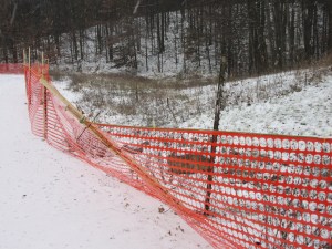 One of the smaller flimsier t-posts holding the snow fence snapped off a few days ago so this morning I found a heavier t-post, pounded it into place with the post driver, and fixed the snow fence. We used zip-ties to fasten the fence to the posts, but we had run out of the heavy ones when I put up the last of the snow fence a week or two ago. I had to use smaller ones which break more easily for the last few posts. EJ found another container of zip-ties in the garage last week. Today I used the larger sturdy zip-ties to attach the fence to the new post and then put them on the posts that I had put up the other day.