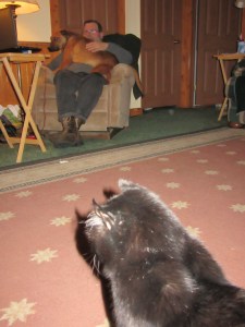Last night when EJ and I got into bed, Hannah Joy jumped into bed between us. Ah, well, we let her. I’m not sure we could have prevented her, but we also let her sleep with us to keep her safe from Luke. Luke is usually the sweetest and gentlest cat, but I think he has gone over to the Dark Side. He follows Hannah and lurks in strategic places–like doorways–to hiss and swat at she when she gets close. I’m beginning to think of Luke as “Darth Luke” and I hear Darth Vader’s theme music in my head whenever I see him. The other cats and Hannah get along fine. Luke is beginning to irritate Hannah and she’s been setting him some boundaries. Hopefully they can work out a truce.