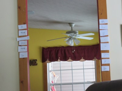 I think it’s going to be easier for Hannah to learn the Hebrew words than for us because I have to first decide on and find the words, teach them to myself and EJ, and then remember them to tell Hannah. I have made cards of the Hebrew words and their phonetic pronunciation and stuck them in strategic places around the house to help EJ and me learn and remember. I made cards of the few words I am currently teaching Hannah as well as cards for words that I might teach her–because it’s easier to make all the cards of words that I might use rather than having to go back and find them later.