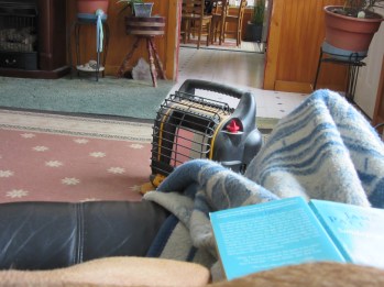 I opened my eyes to a beautiful snow-covered world. I also woke up to no Internet. A couple hours later we lost our power. EJ hooked up our little propane heater, and we were toasty warm all day.