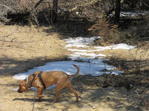With the snow mostly gone–although, amazingly, I still see a few small piles of snow–I’ve been walking Hannah down to the mailbox, which I haven’t done much since I broke my arm. I’m teaching Hannah the Hebrew word for “with me” to teach her to walk with me. It makes me laugh when she walks with me before I command her to. I know she’s doing it because she walks right next to me with her eyes on my face, hoping for her treat. She’s very food motivated.