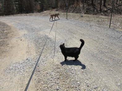 Last Thursday I walked Hannah down to get the mail. Our cat Josette walked down with us. She’s such a sweetheart–very friendly. She loves to accompany us when we take care of the ducks and chickens.