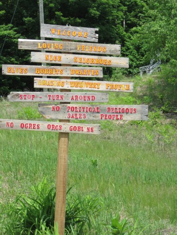 I actually made a sign last summer that forbid orcs–and ogres and goblins–from entering our Enchanted Forest. I would have put “No trolls allowed” on the sign but then I wouldn’t be able to live here because technically we are trolls. In Michigan anyone who lives south of the Mackinac Bridge that connects the two peninsula is called a “troll” because, you see, we live under the bridge like the trolls in the children’s story “Three Billy Goats Gruff.”