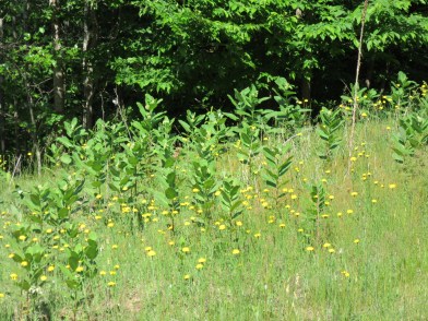 Whenever I walk Hannah down the driveway, which is several times a day, I enjoy watching for wildflowers blooming. I noticed that there are a lot of dandelion-type flowers growing among the milkweed on the hill. Their yellow was very cheerful among the green. I know a lot of people dislike dandelions and spend a lot of money on chemicals to eradicate them from their lawns. I’m not sure why it’s so important to have a dandelion-less lawn. I’ve always loved dandelions. They are the first flowers that children pick to bring to their Mommy. They also are a nutritious food (if they aren’t covered with chemicals). And they are a good source of nectar for bees, which are struggling to survive. I found this informative cartoon from a website called “Mother Nature News”: