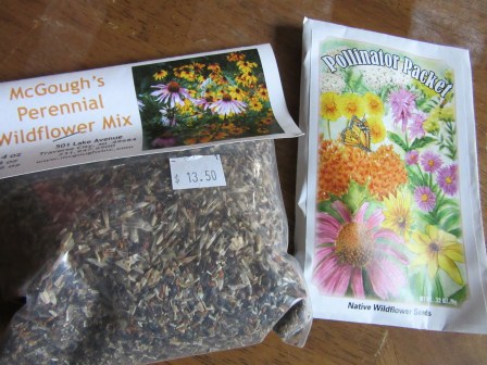 We try to have quiet, relaxing days on Saturdays, but this time we had to go to a local feed store called McGoughs. We have several feed stores in our area that have good prices on different products. We go to TSC for our poultry feed, dry dog food, and other items like garden hoses. Unlike the other stores, it’s open on Sundays. One local feed store grows its own grass seeds and we can buy it at bulk for a great price. McGoughs is furthest away but it sells 40 pound bags of dry cat food for a really good price. We bought two. We store our dry pet food in large trash cans in the pantry so we don’t have to buy it often. McGoughs also grows and bags their own wild bird seed for a great price so we tend to buy it there each autumn. I haven’t been able to find any local wildflower seeds at any of the feed/farm/nursery stores, so I’ve been buying nonlocal commercially packaged bags of seeds which has both annual and perennials seeds in it–probably more of the former than the latter. Even garden centers in home improvement or larger grocery stores sell these bags. But on Saturday I found bags of the feed store’s own local perennial wildflower mixes. It’s more expensive but the seeds are local, and it’s all perennials, which is exactly what I’ve been looking for. I like perennials because I don’t have to buy them every year. I bought a bag and a packet of seeds. I plan to buy the wildflower seeds from here each Spring now until I have enough wildflowers. Hmm….is it possible for a person to have enough wildflowers? I’ll find out.