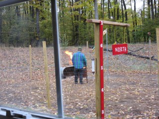 Before EJ started his tasks, we consulted each other about the best location for  my new snow measuring stick that I had made last week. We put it at the edge of the forest where we can see it from the windows of our house. I used the post hole digger to dig a hole and put up a post. After EJ finished his other tasks, he fastened my snow measuring stick to the post. We now have one in the back yard and one in the front yard.  It will be interesting to see how much snow we get this year. My snow sticks measure up to seven feet.