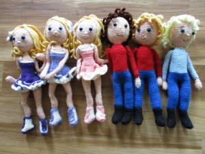 I wrote my last post on March 18. I haven’t meant to ignore you all, dear followers. I have been very busy crocheting from morning till evening. I had to make a Torch Lake Monster and six dolls–three girls and three boys–for a customer before Easter. The six dolls have the hair and eye color of her grandchildren with clothes in their favorite colors. The pattern I used was for a girl doll only but I adapted it to make the boys. I think they turned out rather cute.
