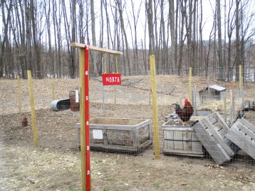 The chickens hate cold and snow so they don’t venture out in the winter. With the nicer Spring days, however, they have come out of the coop. It’s nice to see them wandering around the garden once again. Once we get the garden planted in early May, we will have to shut the gate so they can’t get in and kill the plants with their scratching. The fence encloses both the garden coop and we can close a gate between them so the chickens can’t get into the garden section. However, until we get the garden planted, they are welcome to roam through it. Their scratching in the dirt actually helps prepare the garden for planting. 🙂