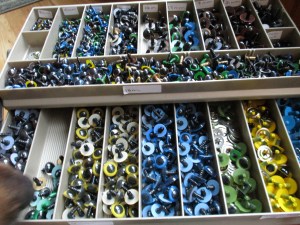 Saturday we had a quiet day. I spent a couple of hours organizing my craft eyes by size in the  tackle box I “stole” from EJ a few years ago. I labeled the sizes so I can more easily see what I have and reorder when I get low.