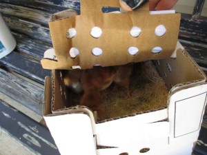 The chicks were mailed to us through the post office. I was very apprehensive about this because I did not understand how the babies could survive the 2-3 day trip without food or water. I imagined picking them up from the post office, opening the box, and finding ten dead babies. I was prepared to be traumatized.