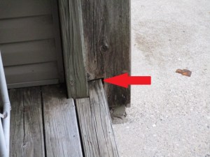 Hannah Joy doesn’t like going out through our main entrance because a yellow jacket had stung her last week. They built a nest under a post next to the porch steps. Usually, when I give Hannah a command to go onto the porch, she runs onto it and then waits for her treat, but now she is in such a hurry to get inside the house before the yellow jackets sting her that she ignores the treat. We were trying to figure out the best way to get rid of the nasty buggers, and then yesterday another yellow jacket landed on Hannah’s head. I said, “That’s enough!” and I drove to the store and bought some Raid Hornet and Wasp spray. We waited until dark and then EJ sprayed their lair. He sprayed it again this morning. But Hannah is still scared so this morning she stopped at the kitchen door, refusing to step foot into the entrance hall leading to the porch door. When I put her harness on, she ran to the door leading to the deck instead. Poor baby.