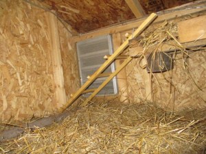 When I tired of hauling heavy boxes and dirt, I built a ladder for the chickens so they can reach the topmost platform. I don’t know if I like it. It might be better to just put a board ramp to the top. I’ll see if the chickens use the ladder before I change anything. I was thrilled to see them using the lower platform. I’ve found eggs in it yesterday and today. Millie, our black cat, also likes to lay in it. 🙂