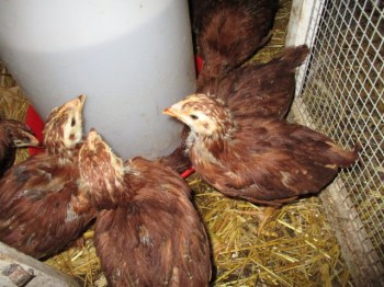The baby chicks are growing fast. I’ve been trying to figure out when to allow them to join the general population. I think maybe in another week or two. I’d like them to be big enough that they won’t be at risk from the cats or other predators. The cats get along with the older chickens just fine, but I’m not sure if they’d be tempted with smaller birds. I’d rather be safe than sorry.
