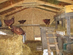 While EJ kept busy with the pears, I went out to work in the coop. I decided to remove the partition dividing the coop in half. We had originally put it there because Cuddles our duck wouldn’t leave the hens alone. Now that we don’t have ducks, and there are so many animals living in the coop (20 chickens and 3 cats), it doesn’t make sense to have the partition in there. So I took it out. It was actually a lot of work to take it out. I had to move a few things around, saw a too-long board, do a little hammering, and then I was finally finished. At least for now.