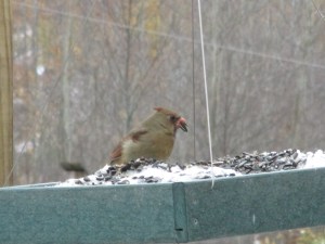 We’ve been enjoying the birds that are visiting our feeders. I enjoy them all, but I was especially glad to see a cardinal at the feeders. Cardinals were very common downstate but we’ve only seen a few at our Enchanted Forest. I really missed them.