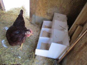 A couple of weeks ago we stopped in at Goodwill and I found a neat “feeder” for the chickens. It was only $3. I think it works better than the bucket I was using–mainly because it’s easier to keep filled.