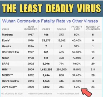 In addition, the infections/deaths from Covid-19 are much lower than other serious viruses in the past, as shown in the chart. Pause and think about all these numbers for a moment.