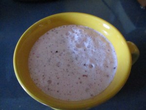 One of EJ’s co-workers gave him some Kefir grains. Kefir is a fermented milk drink similar to a thin yogurt that is made from kefir grains, a specific type of culture of living micro-organisms. EJ calls them “mitochondria” which in Star Wars were linked to potential in the Force. Kefir is believed to be a more powerful probiotic than yogurt and to have many health benefits. When it ferments, we strain it to separate the culture from the liquid. We put the culture in new milk to start a new batch and drink the Kefir liquid or use it in recipes. Today I made blueberry smoothies with our Kefir liquid. It was quite yummy. My friend told me that she has made a delicious bread with Kefir. I would like to try it, but I might wait until flour is more plentiful so I don’t waste it if our bread doesn’t turn out.