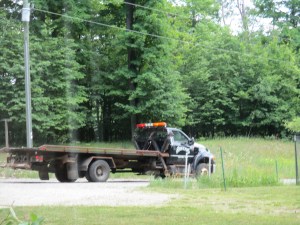 EJ said that the dealership’s estimate for fixing the Suburban’s brakes was too expensive (and, besides, he already ordered parts to fix it himself). He originally was going to drive me back to the dealership and have me drive the new truck home while he drove the Suburban, but I insisted that he arrange to have a tow truck bring the Suburban home because I didn’t want him driving a brakeless vehicle more than he already had. It just wasn’t worth it. So he called a towing place and made arrangements. He took Hannah Joy and me with him to drop the Suburban’s keys off to them and then we went home to wait for the tow truck to bring the Suburban home.