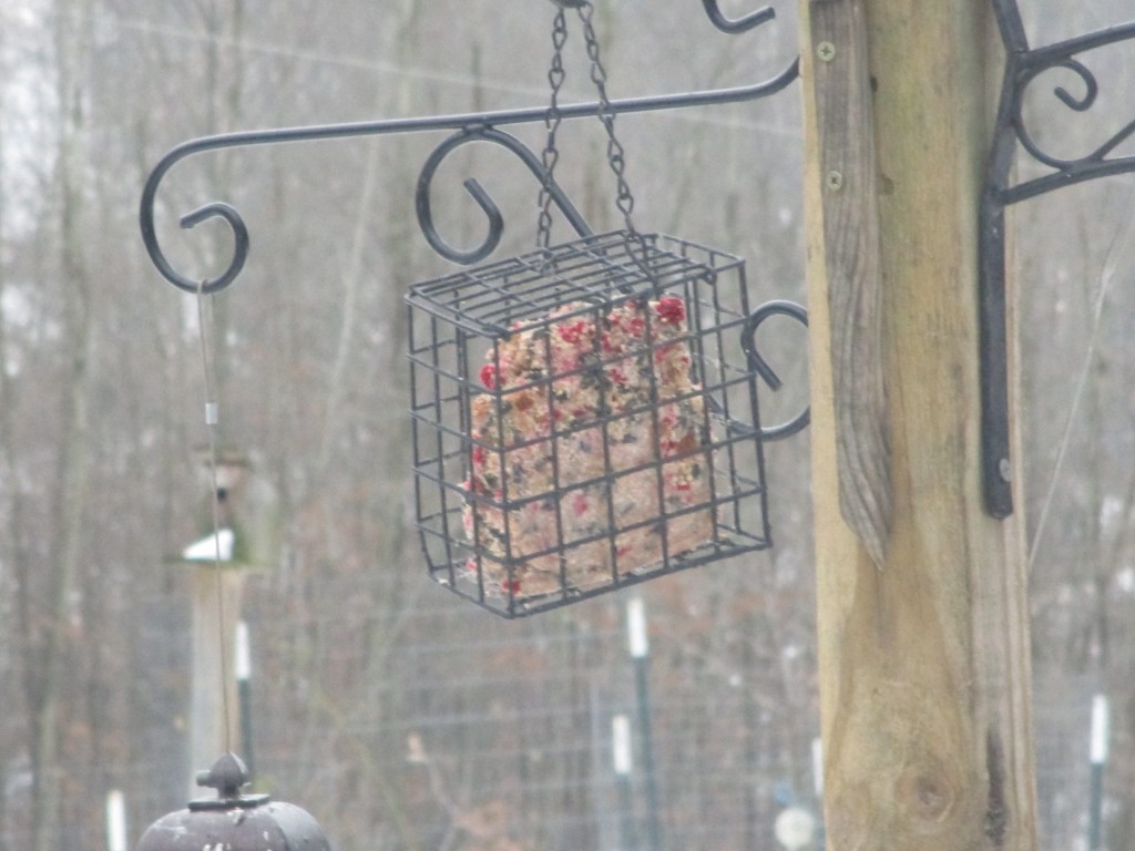 The wild birds have eaten most of the suet I made them so I made them more yesterday. I used the deer fat that EJ rendered. The birds like it. 🙂