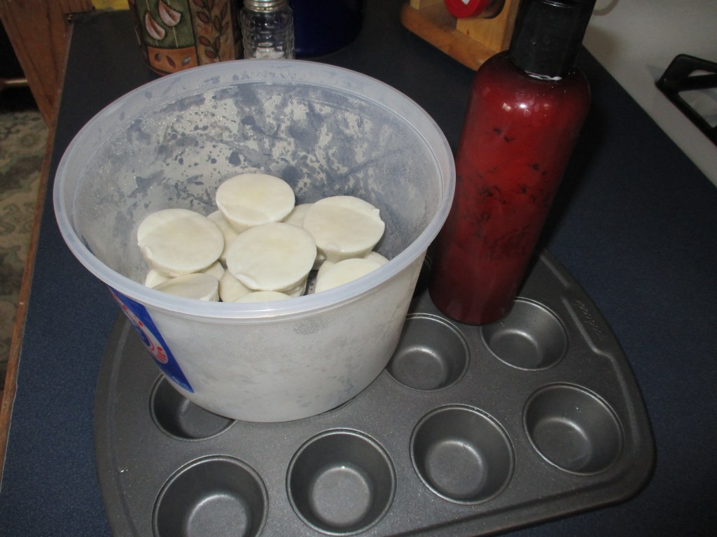 Yesterday I made one of the homemade PH-balanced shampoo recipes I’ve been accumulating because I finally got all the ingredients I need. I used 2 Tbsps raw honey, 1 tsp sweet almond oil, 1 can coconut milk, and 10 drops of lavender essential oil. The recipes say that coconut milk has a short shelf life so they suggest freezing the shampoo in ice cube trays and only thawing what can be used in a week. I couldn’t find my ice cube trays–I might have gotten rid of them because we have a fridge with an ice maker? Instead, I used mini cupcake pans, which I rarely use it, preferring regular sized cupcakes and muffins. When they were frozen, I took them out of the cupcake pan, placed them in a container, and put them back into the freezer until needed.