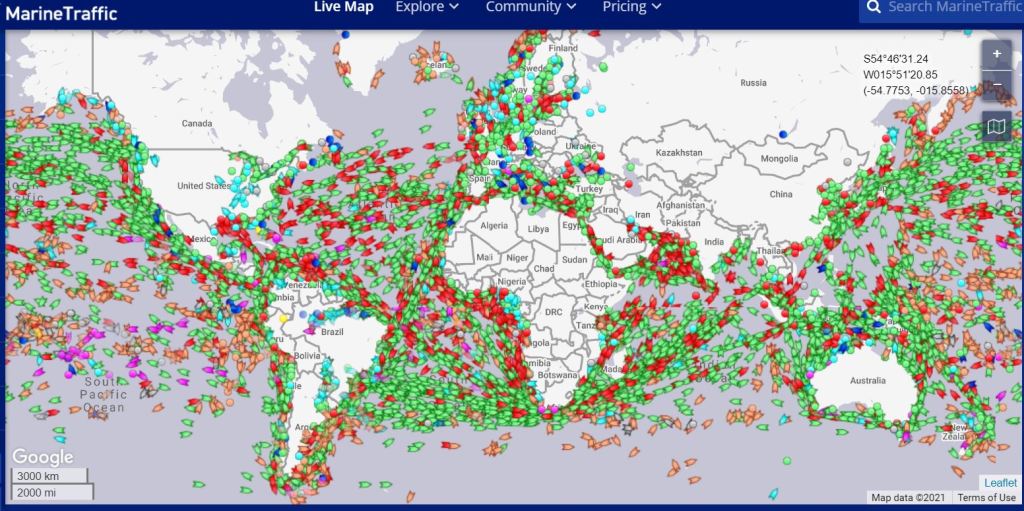 We live closer to the Great Lakes now than we used to, and we watch boats go by if we are rock hounding along the coast, but we don’t live close enough the Lakes to be able to actually see ships every day. I have, however, discovered an online map that lets me track maritime activity on the Great Lakes–and even around the world. It’s amazing how much marine traffic is on the waters. Each color on the map below represents a different type of ship. Sometimes I wonder about the stories of people on boats and ships traveling around the world. What are they seeing? What are they experiencing? What dangers are they encountering? What are their stories? Every November I pause to remember the Wreck of the Edmund Fitzgerald, who was lost with her entire crew of 29 men in a terrible storm on Lake Superior on November 10, 1975. It was immortalized in this song by Gordon Lightfoot. Currently, I am tracing the recent drama of the Ever Given ship that blocked the Suez Canal.