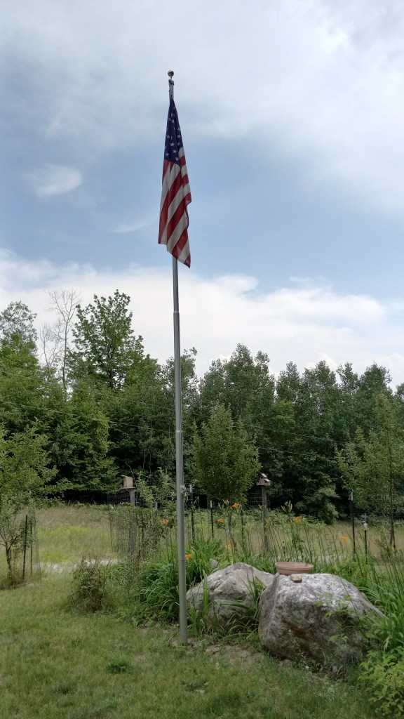 Now we are staying home. On July 4th–this year it’s on Tuesday–there are always a lot of fireworks fired off by towns and campgrounds. We live on a hill surrounded by forest so we have always been able to hear the fireworks all around us, but haven’t been able to see any of them. However, over the last year our neighbor-across-the-road has periodically and randomly put on beautiful fireworks shows that are as good as municipal programs we’ve seen. We are able to see them from while sitting in our living room, which is very delightful. I’m hoping he does fireworks on the 4th.