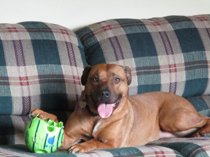 Hannah Joy was one of three dogs who had been rescued from an owner who had kept them outside 24/7 and starved them. Hannah Joy (and the others) was so thin that we could count all her ribs. You can read the full story of the day we adopted her here: Introducing Hannah Joy.