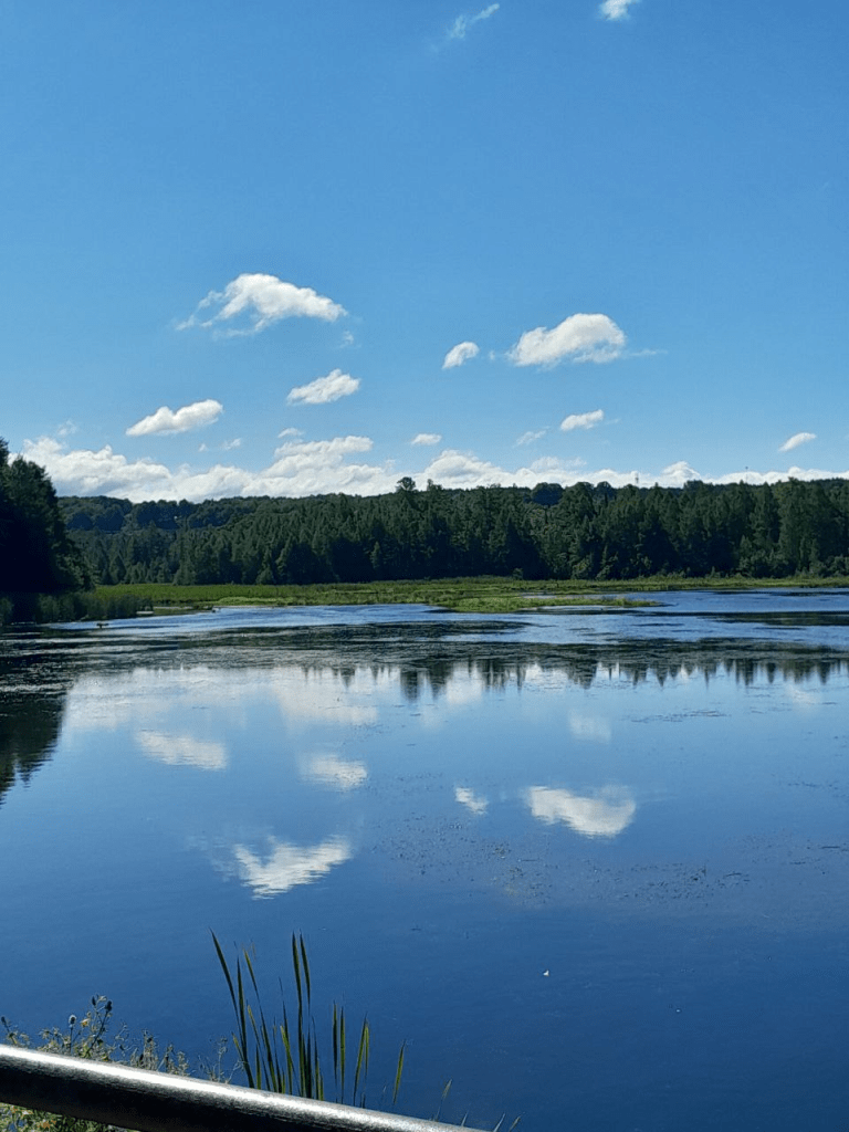 The elderly lady told me about the plans to remove the dam and said she wasn’t sure how that would effect the pond if they did. On the way home, EJ said we should take some photos of the pond before they destroyed the dam so we stopped in at Rugg Pond this week. Here’s one photo that EJ took: