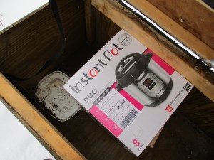 I opened The Magic Box and there was my package! It was indeed large, heavy, and unwieldy, so I was glad I had thought to bring the sled. I put the package on my sled and pulled it up the long, steep, snowy driveway. I felt like a hardy homesteader of by-gone days overcoming harsh conditions. Ok, it wasn’t that bad, but it was a bit cold and it’s fun to imagine.