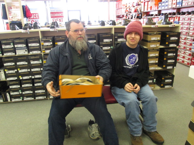 All of our shoes are wearing out so last night I did some research on the location of shoe stores in the city and their products. After we left the hospital, EJ drove us to the shoe store I had selected, and we all tried on shoes until we found the ones we liked best. We each got a pair of shoes, and EJ got two pairs because his shoes were part of a “Buy One, Get Second Pair Half Off” sale.